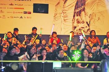 鍾楚紅與邱瓈寬齊捧華仔場。(圖:香港明報)