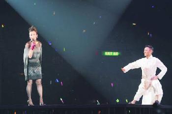 接著汪明荃出場,兩人還大鬥功架,華仔笑言有意加入八和會館,身為會長的阿姐立即要求測試,要華仔走圓台,當然華仔也行得似模似樣,立即受阿姐讚賞指他很有潛質,有機會一起合作演出粵劇。接著兩人合唱《勇敢的中國人》。華仔也表示,在這20場演唱會中,每位演出的嘉賓都很難忘,最感謝是葉德嫻,她當了20場嘉賓。(香港明報)