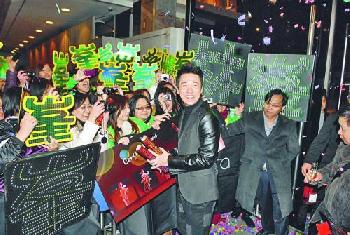 林峰蟬聯“亞太區香港男歌星獎”,他放紙炮與歌迷分享喜悅。 (圖:香港明報)