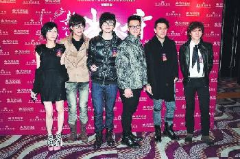 泳兒(左起)、洪杰、洪卓立、吳浩康、張智恆、關智斌結伴捧老闆的場。(圖:香港明報)