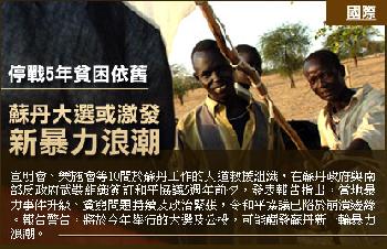 蘇丹政府與南部武裝組織蘇丹人民解放運動在2005年1月9日簽署《全面和平協議》,結束長達20多年的內戰,根據協議,蘇丹南部將在2011年1月舉行公投,以決定是否獨立。今年4月,蘇丹亦將舉行24年來首次多黨選舉,選出總統、南方自治政府總統及議會成員。