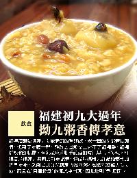 “爸爸每年正月29都會煮拗九粥,每一個人一定要吃一碗!福州人相信‘9’是一個不詳的數字,吃拗九粥能去除霉運,而年齡逢‘9’或‘9’的倍數的人,更要送拗九粥給別人。”
