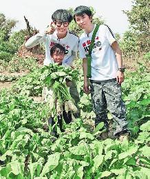何韻詩與Donald看著貧童耕種感受良多。(圖:香港明報)
