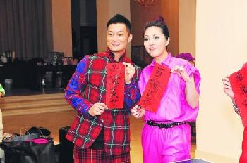 (香港)丁太楊千嬅今年率領東亞旗下歌手,包括余文樂、何韻詩、蘇永康、王菀之、劉浩龍、藍奕邦及新人彭永琛來一招“八星報喜”,更向眾人大派紫色大利市,祝大家兔年福星高照,掙到盆滿缽滿,天天都開開心心!向來搞鬼的余文樂竟寫了張“百發百中”揮春給千嬅,寓意丁子高能在新一年“百發百中”,千嬅順利生個小兔寶寶。千嬅收下這張揮春後不禁大笑起來,並反問樂仔:“你當我老公是鎗王之王呀?”語畢即執起毛筆,寫上“天降美女”四個大字贈予樂仔,希望他早日覓得真命女友。
