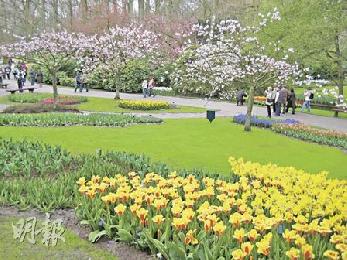 庫肯霍夫公園佔地32公頃(約1.6個維園的面積),花類眾多,4月中下旬甚至有櫻花盛放。(圖:香港明報)