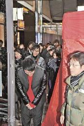 對於還未出場活動便腰斬,深感無奈的林峰只好在離開時透過玻璃門鞠躬向在場粉絲道歉。(圖:香港明報)