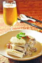 啤酒話梅雞翅--雞翅膀以水煮製後,加啤酒及話梅浸泡,成為冷盤一道,由於啤酒本身味道不濃,因此是淡淡的酒香,加上酸酸的話梅,醒胃之作。(圖:香港明報)