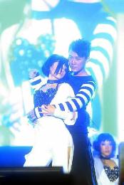 大汗猛飆的林峰,在演繹《換個方式愛你》拭擦眼角的動作,究竟擦的是汗水還是淚水,連他自己也分清楚,只表示“自己很感動”,被台下粉絲的熱情打動,台下有粉絲高喊前緋聞女友鍾嘉欣的名字,似乎為這段“戀情”無法開花結果大嘆可惜。