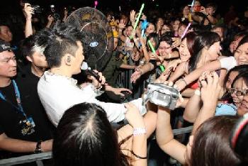 (馬來西亞)林峰2011年首個海外演唱會正式在大馬上演,他在演唱會大玩親民,被港媒批評“Chok樣”(愛耍帥)的他,在這場長達140分鐘的演出上,耍帥之餘又不時露出傻氣的笑聲,還與舞蹈員勁歌熱舞又震胸,可謂使盡渾身解數,電倒全場粉絲。只是大馬的炎熱天氣,讓他一上場即汗水猛飆,從頭濕到尾,頻頻揮汗,在台上破天荒猛灌4支礦泉水!