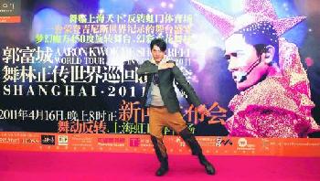 (中國)郭富城日前飛抵上海,出席“舞林正傳世界巡迴演唱會”兔年的中國首站記者會。雖然這個演唱會已巡演3年,但依然大受世界各地的歌迷歡迎,這次在上海虹口體育場演出,城城將會加大旋轉舞台跳舞的範圍,並配以嶄新的歌曲舞蹈劇。整場表演及舞台的投保額,更高達3000萬元人民幣(456萬美元)。