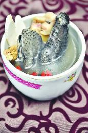 花膠百合燉鱷魚肉——由泰國引入的天然飼養鱷魚肉,營養高而滋潤。(圖:香港明報)