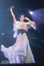 王菲唱到衣服袖子滑下,邊笑邊整理。(圖:香港明報)