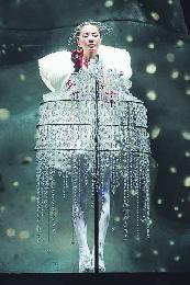 王菲出場時的雪山女王造型,換上蜘蛛狀頭飾。(圖:香港明報)