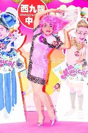 (香港)王祖藍3月12日下午舉行兒歌音樂劇專輯《HanDeLa Musical》唱遊會,他一身HanDeLa Auntie造型亮相,深受小朋友歡迎。玩遊戲時,有男童搞笑地擺出功夫姿勢,還踩祖藍的高跟鞋。