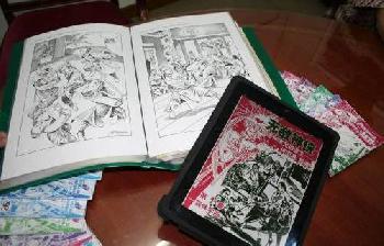 清兵的玩樂場面。漫畫版的《無敵神俠系列》,畫者何團源每日畫一幅,畫功一流。(圖:印尼星洲日報)