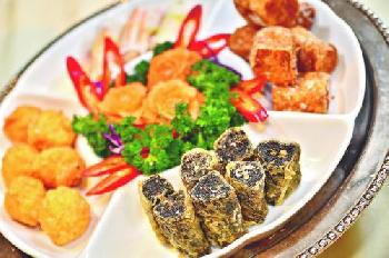 除了傳統蝦、蟹棗,還有意頭十足的發財(菜)卷及菜頭卷,乃老潮州必吃的宴客小吃。(圖:香港明報)