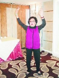 琴姐在記者面前示範健身操,力證自己沒患柏金遜症。(圖:香港明報)