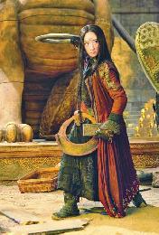 (中國)桂綸鎂在電影《龍門飛甲》飾演番邦公主,穿上華麗紅裙,臉上紋有刺青,皮膚黝黑。她說角色非常野蠻,但覺得扮演古代公主很過癮,華服美觀兼保暖,但每次造型要花3個半小時,比誰都睡得少。