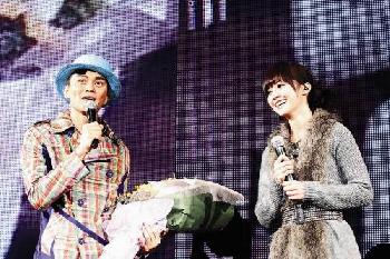 Encore環節,蔡卓妍出場向Chilam獻花,兩人合唱《現代愛情故事》。(圖:香港明報)