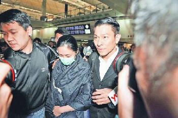 傳媒之後收到華仔與朱麗倩將乘下午班機返港的消息,兩人於5時05分抵達機場,雖然見到大批傳媒,但沒有表現不快。華仔穿著白恤衫白褲,朱麗倩則穿著黑白圓點衫,戴上口罩,全程低著頭。