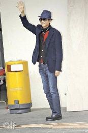 鄭少秋3月30日雖然不接受訪問,但仍禮貌的向記者揮手打招呼。(圖:香港明報)