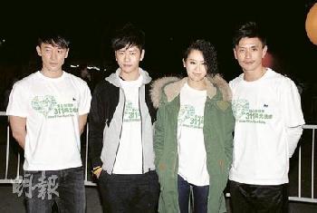 無線4月1日晚只派出林峰(左起)、許廷鏗、胡杏兒、黃宗澤出席,胡杏兒表示做善事不計較人數多少,最重要有心,而且林欣彤也是代表無線出席的藝人。(圖:香港明報)