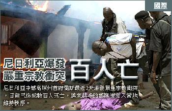 (尼日利亞)尼日利亞中部高原州首府喬斯最近2天爆發嚴重宗教衝突,目前已造成數百人死亡,越來越多的部隊被派入當地維持秩序。