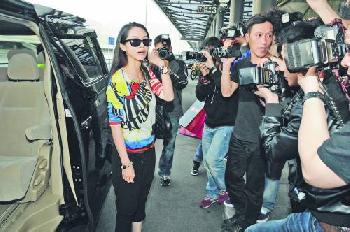 潘霜霜4月7日黃昏離港,她左手仍戴著林峰送的手表,念念不忘。(圖:香港明報)