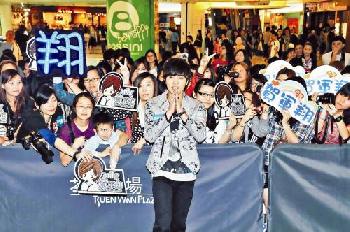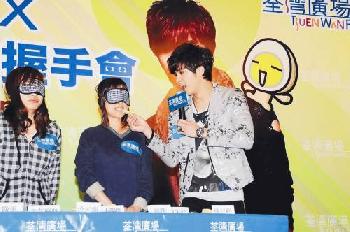 (香港)台灣型男賀軍翔4月10日專誠到港出席在荃灣廣場舉行的“賀軍翔搗蛋握手會”活動,賀軍翔在台上和女粉絲玩遊戲,更親自餵女粉絲吃東西。