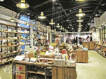 “好,丘”裡精選的台灣特產,包括米油鹽與本土設計師小擺設。留意天花垂下的燈,燈罩是舊時常用的飯煲蓋。(圖:香港明報)