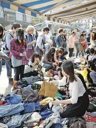 現時逢週六,在中庭空地還設有二手市場Simple Market,我在3月時候來過一次,沒想過會如此人潮如湧,擠迫度恍如我們的年宵市場。市場以二手衣服和農產品為主,人雖多,卻不喧嘩,只覺熱鬧。陽光普照,打扮時尚的男男女女攀上被野草染滿了的斜坡頂上,享受陽光談天說地。