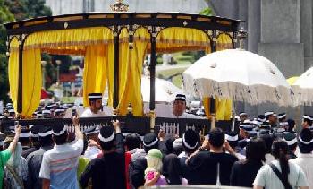 王宮大殿上可看見,已故蘇丹的靈柩用柔州王室旗幟覆蓋,並置放蘇丹的皇冠和寶劍。