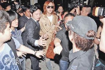 (香港)韓星張根碩4月28日晚抵港,展開亞洲巡迴宣傳香港站之旅,逾百粉絲一早在機場迎接偶像,大會雖安排10多名保安維持秩序,但仍抵擋不了粉絲的熱情。染了一頭金長髮,戴上墨鏡,身穿大衣、牛仔褲的張根碩,28日晚上11時30分步出閘口,他見到大批粉絲接機,原本打算走近打招呼,但未走近,粉絲已忍不住衝上前親近偶像,工作人員見情況太混亂,連忙拉張根碩折返,待保安重整隊形後再步出。張根碩花了20分鐘上車返酒店,其間有粉絲想送禮物亦難以再靠近。