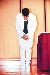 一身白西裝打扮的聰仔在經理人張國忠陪同下會見香港傳媒15分鐘,他神情肅穆,先後四度鞠躬,其舊愛上山安娜也到場支持。