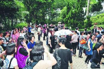 楊天經與吳文珊結婚,吸引親友及陳寶珠粉絲逾百人到場湊熱鬧。(圖:香港明報)