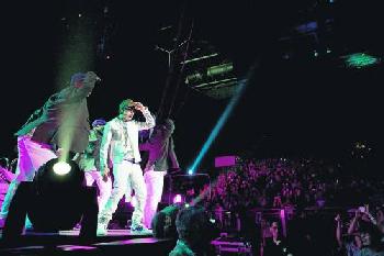 (香港)Justin Bieber5月13日晚在香港舉行的My World Tour,施展渾身解數,證明並非只是靠外表。Justin除了大跳偶像米高積遜經典的Moonwalk舞步之外,他又拿起吉他自彈自唱及表演鼓技。會上播放Justin小時候的片段,只有幾歲的他已非常有表演慾兼音樂天份,雖然咬字仍未清楚,但他已說要上電視表演。