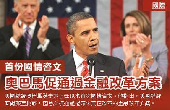 奧巴馬將著重談及解決失業、刺激經濟及紓緩財政赤字及加強監管金融機構等措施。