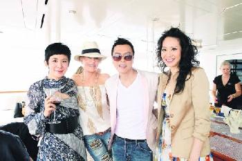 珍芳達(左2)知道遊艇歡送派對有吳君如及甄子丹出現故踴躍參與,並大合照留念。(圖:香港明報)