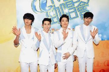 2AM成員鄭珍雲(左起)、趙權、李昶旻、任瑟雍表示能在亞視演出感到榮幸,可讓香港觀眾多認識他們。(圖:香港明報)