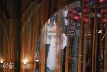 當記者被趕離場,柏芝才於8時30分穿上一件白色似婚紗的長裙現身,並即時投入地與權相佑一起親密共舞,不到10分鐘即有內地劇組工作人員,又拉著尚在附近的記者,指若再拍攝就不客氣,即使表明是住客亦不得要領,被拒入大堂內。