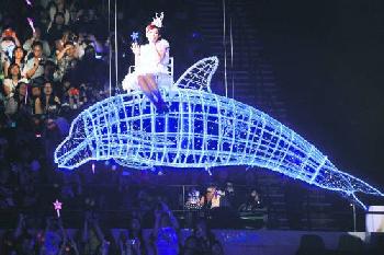演唱會其中一個高潮,是她坐著海豚的吊船,吊上半空圍繞紅館近山頂坐位,她邊唱邊和山頂的朋友揮手,她在吊船說:“可以和山頂朋友近距離接觸,這是我第一次,希望可以給大家一個驚喜。導演這樣安排好難忘。”之後她穿了一條數十呎長的裙子,站在高台上唱歌。