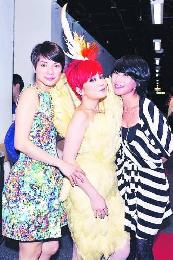 梁靜茹(中)這個造型指似遊戲機的卡通人物ANGRY BIRDS,她的好姊妹李心潔(左)及許如芸(右)又有何評價呢?(圖:香港明報)