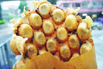 店東生於“屋村”之家,自小對雞蛋仔情有獨鍾,長大後自設小店,希望做出小時候的味道。記者覺得其雞蛋仔的蛋心雖不至於軟綿,但亦夠香,最出色的是巧克力雞蛋仔,一般店舖以褐色巧克力蛋漿製成,店主卻別出心裁,在原味蛋漿中加入一顆顆巧克力碎,出爐後巧克力碎呈半融狀態,吃起來特別滋味。其實這做法有點像法式巧克力牛角包或糕點,或許因而引來一些外籍人士。