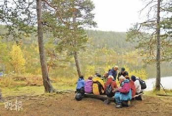 團友們遊過船河,行過山,在漂亮的Lemmenjoki公園中午餐。(圖:香港明報)