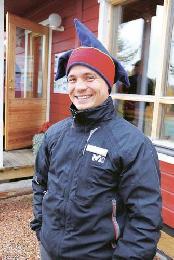 (芬蘭)Aslak來到的時候,我還以為他特地作了精靈打扮。Aslak穿著普通的黑色風褸,只是頭戴的帽子非常特別,鮮紅襯鮮藍,頂端還分開成數個尖兒,好看非常,像從童話故事裡走出來一樣。聖誕老人村裡的elfs不就這樣?