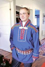 薩米族的語言文化自成一體,其中又以衣飾最突出,被視為重要的文化代表物。在郊遊與船河完結後,我們有幸走入Aslak的家,媽媽Kaija還亮出傳統服裝。薩米的服裝設計講究,顏色亮麗,鮮綠鮮藍等,不同家族還有不同的設計傳統。Kaija便告訴我們,留意腰帶上的鈕扣裝飾,圓形代表單身,方形代表已婚。薩米族人現今依然保留傳統,在聚會節慶上,均會穿上傳統服裝。不過Aslak補充:“我們雖然傳統,但還喜歡新科技,網上其實有不少關於薩米族的網頁與群組。”