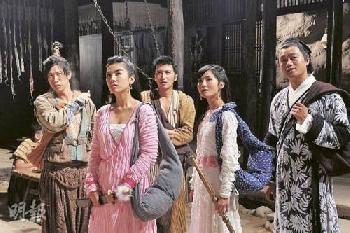 張家輝、黃奕、霆鋒及阿Sa為追查白玉觀音下落,去到財神客棧。(圖:香港明報)