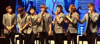 U-Kiss希望很快有機會來馬開唱,左起為在會上展示美聲唱功的Hoon,饒舌唱功一級棒的AJ、第二次在馬慶生的東浩、盛讚大馬女生很漂亮的基石、後來脫外套搶鏡的Eli、不介意找粉絲當女友的Kevin,還有在台上最閒不住的隊長秀鉉。(圖:馬來西亞星洲日報)