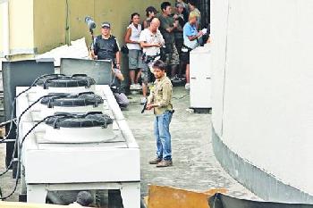 (馬來西亞)謝霆鋒6月14日在大馬拍竣新片《逆戰》的鎗戰戲份後,15日未見他露面,只見周傑倫與安志傑於中午出動,抵達一間大型商場外的天橋拍攝一場挾持人質的鏡頭。發福的周傑倫戴上假髮與鬍子,持鎗追捕挾持人質的安志傑,並且勇戰“受傷”膊頭流血;但看來可能是發福了,加上天氣炎熱,故周傑倫跑起來有點喘氣。另外一場戲更是要周傑倫與安志傑,從一樓高處躍落地下,但他們兩人都用了替身,不過拍至下午兩時左右,因為落大雨的關係,所以要呆等到雨停才再開工。(香港明報)