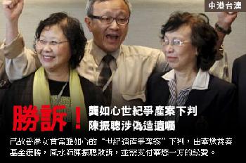 (香港)已故香港女首富、有“小甜甜”之稱的華懋集團主席龔如心的“世紀遺產爭奪案”週二(2月2日)下判,由華懋慈善基金獲勝,風水師陳振聰敗訴,並需支付華懋一方的訟費。